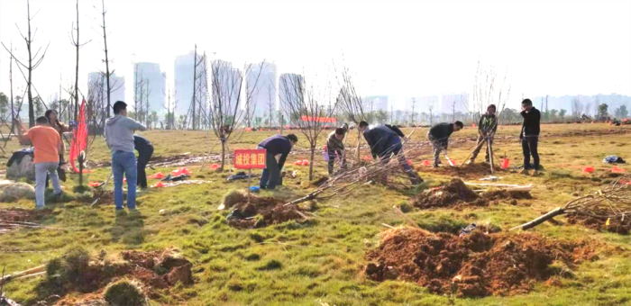 在活動負責人進行任務布置、流程講解后,城投集團團委的青年們便開始了有序的植樹活動。大家分工明確、齊心協(xié)力,揮舞鐵鍬翻新土,扶植新苗列成行,呈現(xiàn)出一派熱火朝天的勞動場面。