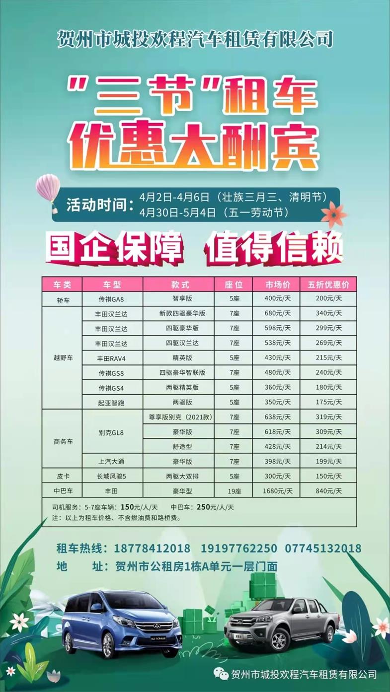 賀州市城投歡程汽車租賃