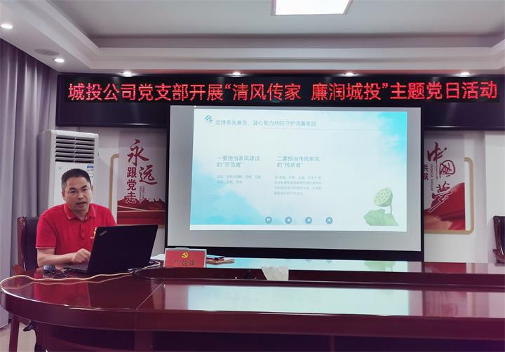 為進一步弘揚家風(fēng)家訓(xùn)文化,厚植廉潔家風(fēng)理念,以良好家風(fēng)助推“清廉城投”建設(shè)向縱深發(fā)展。8月25日,賀州城投公司黨支部書記、董事長蘭乾雄主持開展“清風(fēng)傳家 廉潤城投”主題黨日活動。