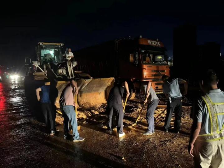 搶險(xiǎn)隊(duì)伍分組行動(dòng),逆“水”而行,默默堅(jiān)守,有的負(fù)責(zé)在水浸路段設(shè)置警示牌和標(biāo)志牌,提醒過(guò)往車輛注意安全;有的負(fù)責(zé)清理路面上的積水、泥石、倒伏路樹(shù)等障礙物,確保路面通暢;還有的負(fù)責(zé)巡查公路沿線設(shè)施和邊坡落石路段,及時(shí)發(fā)現(xiàn)并處理安全隱患,他們的身影成為了抗汛保暢通最美的風(fēng)景線。經(jīng)過(guò)5個(gè)小時(shí)的緊張搶險(xiǎn),北環(huán)路沿線的落石和泥土被全部清理完畢,道路恢復(fù)了暢通。